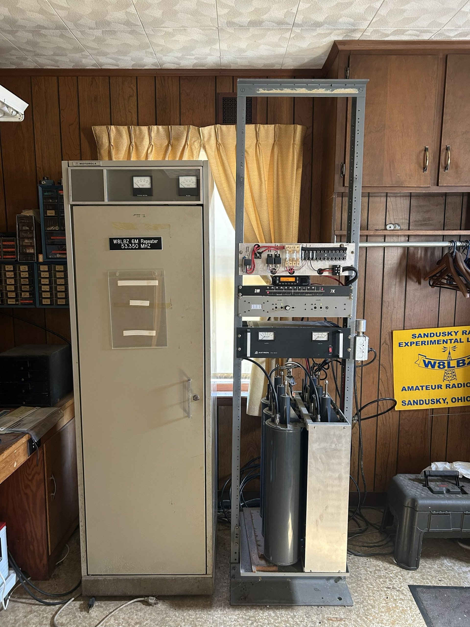 The original system featured a commercial tube-type receiver and transmitter, with a custom-built controller designed by club members. This configuration served the Sandusky area reliably for many years. In the late 1980s, the system was modernized with a solid-state Spectrum Communications receiver and transmitter, delivering 30 watts of output power and controlled by an S-Com 7K controller.